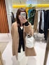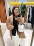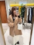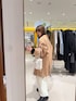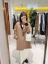 Ibaragi Hazuki(Whim Gazette)のノーカラーコート「ダブルビーバーミドルコート」を使ったコーディネート