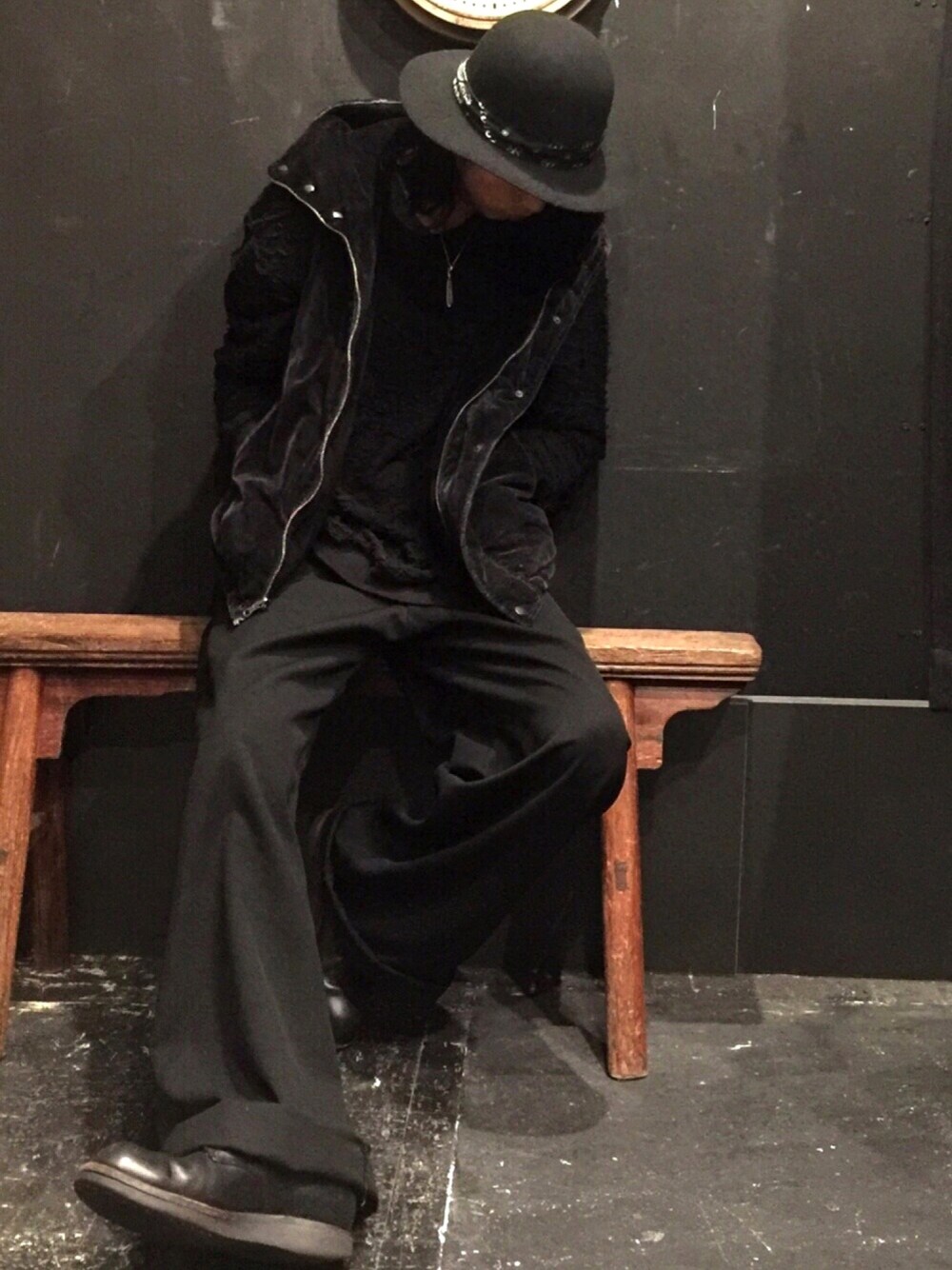 ブラックコーデ 写真じゃ分かりづらいですが ブラックのボーラーハット ブラックのダメージニット←(これは、ダメだ。使いもんになりませぬ。パジャマいきですわ。)コーディネートとかじゃなく、着た感覚が肌に合わないです。 ダウンベストはリバーシブルで、ブラックのマイクロボア。今回使用してるのはシャドウペイズリー側 ブラックの超×2倍のワイドトラウザーズ バックポケットは、レザーの切り返しで馬蹄を表現 とにかく、オールブラックでトーンはシンプルに。 以上。