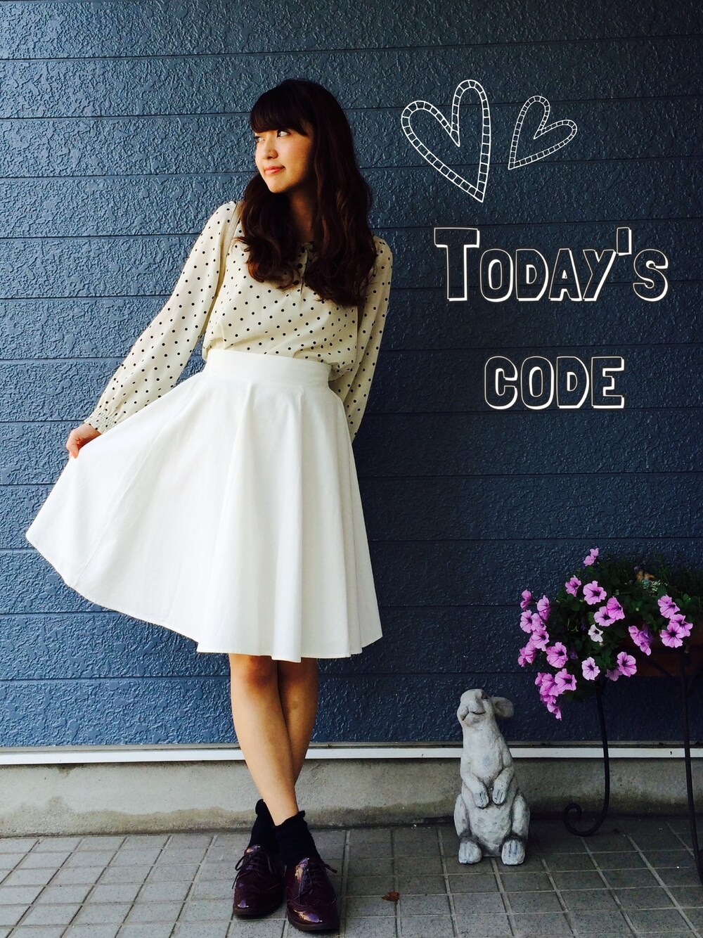ホワイト系のスカートを着用したレディースの秋コーディネートの1枚目の写真