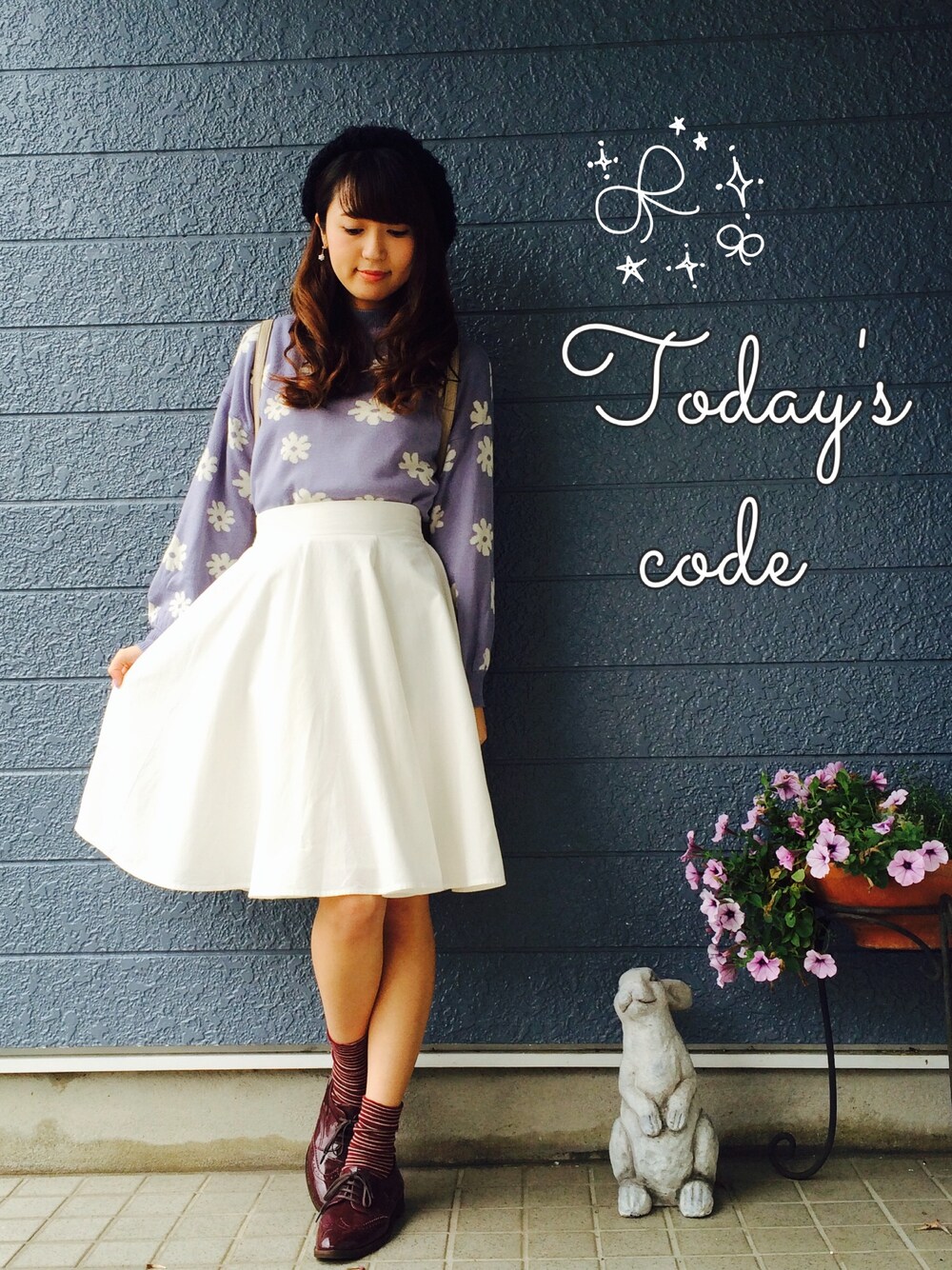 パープル系のニット/セーターを着用したレディースの秋コーディネートの1枚目の写真