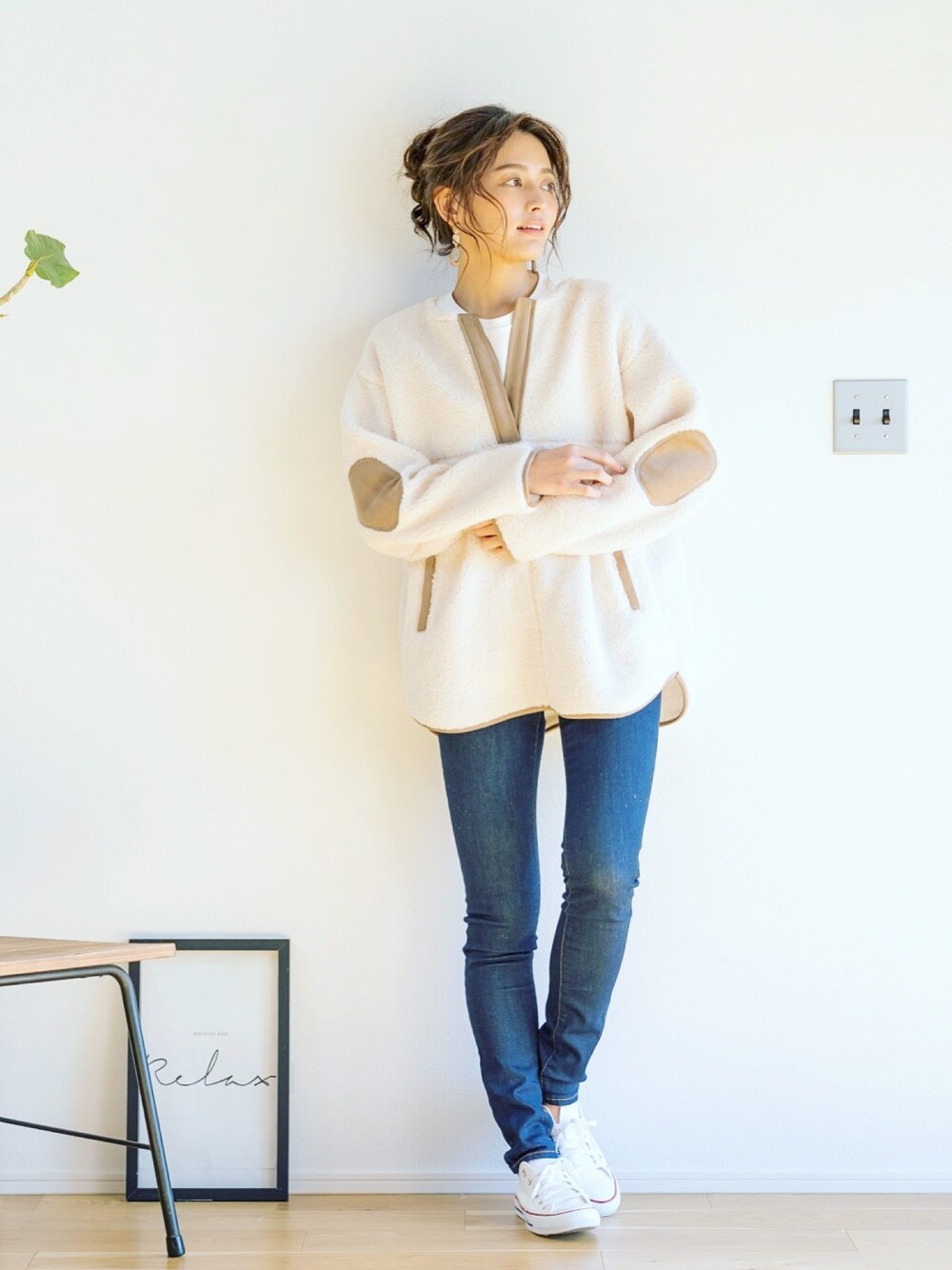 ふわっふわのボアプルオーバーでらくちんコーデ。