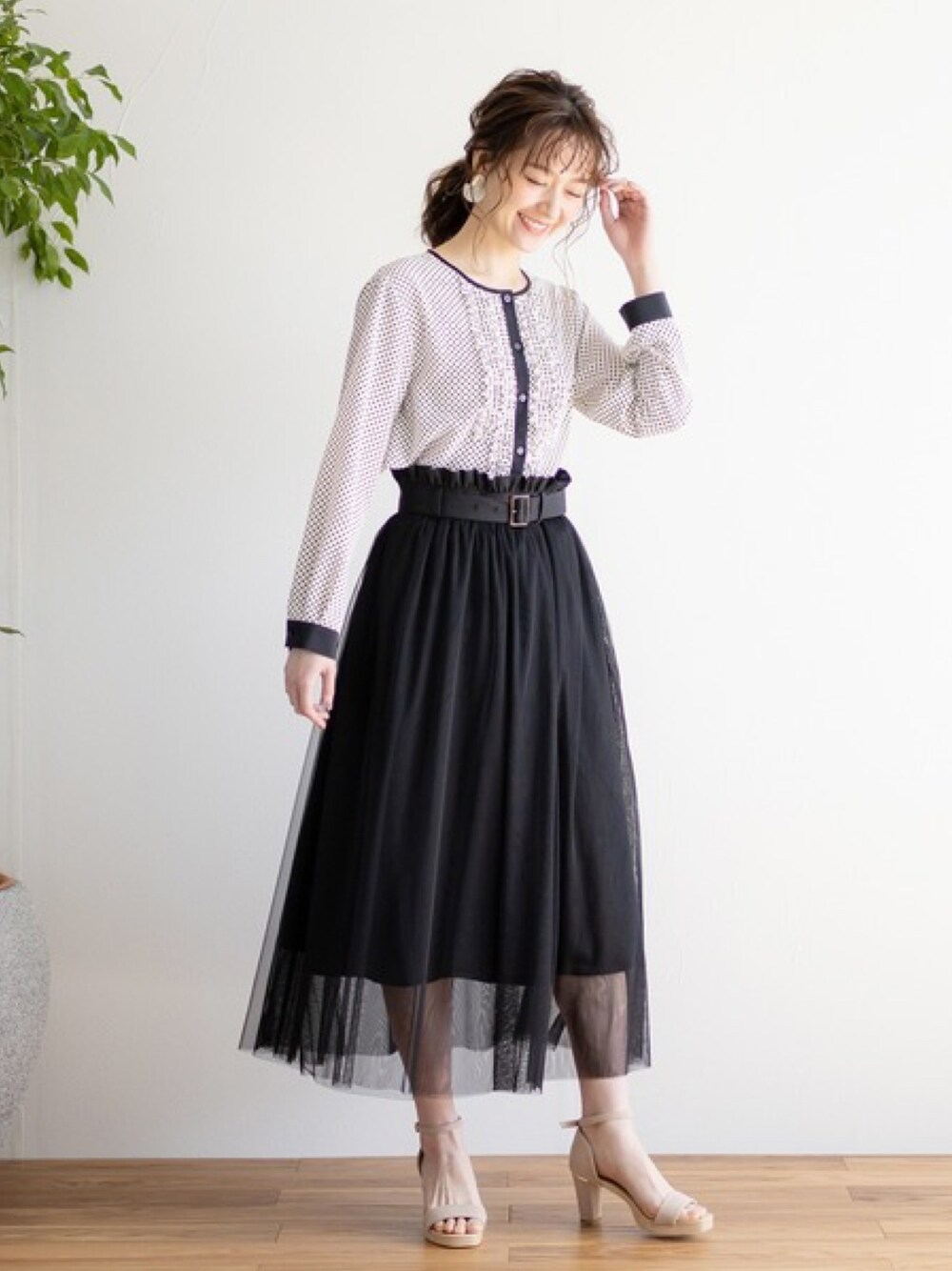 whitecollectionのスカート「【2021SS新作】チュール重ねボリュームスカート」を使ったコーディネート