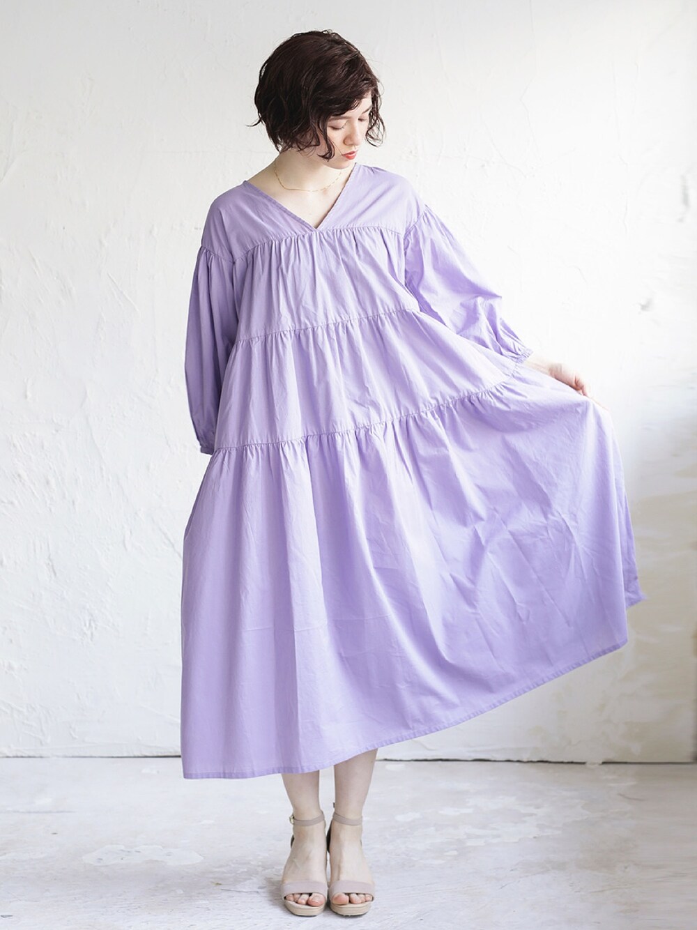 whitecollectionのワンピース「綿100%素材・3段ティアード2wayロングフレアワンピース」を使ったコーディネート