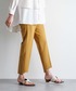 シルエットと履き心地が好評のAnsideの定番型テーパードパンツ。 カラーパンツの展開になっており、いつものコーディネートを明るくしてくれます。 裾のスクエアカットはフラットシューズに合わせても甲に押されて裾がたまらない作りになっていて、スタイルアップ効果が期待できます。 リネンライクなポリエステル素材。ストレッチがあり、快適な履き心地です。 ※後ゴム仕様です。