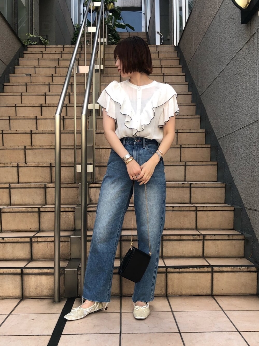 おしら(natural couture)のショルダーバッグ「ミラーイン多機能ショルダー」を使ったコーディネート