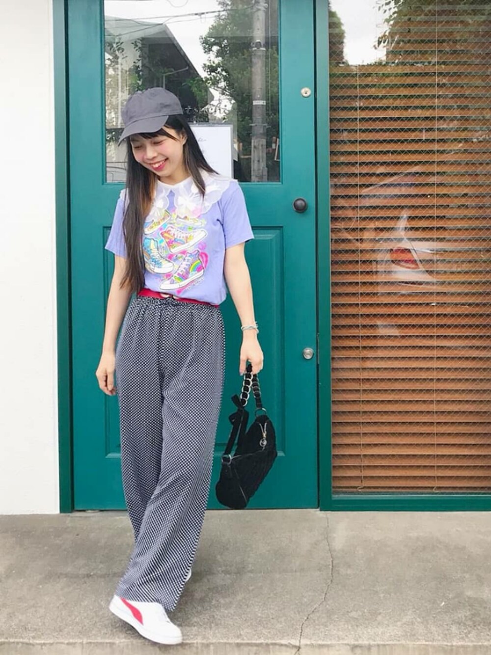 *゚.。・'*;'。・゚*,。・;'*゚ #ootd ラベンダー × グレー💜👖 近い色でまとめてみたけど テイストはMIX〜⚽💫🌼🐇 ✰ T-shirt : made in USA pants : vintage belt : nobrand cap : newhattan shoes : puma bag : used ( wildlily ) fakecollar : wildlily ♡ Instagram @wildlilychie