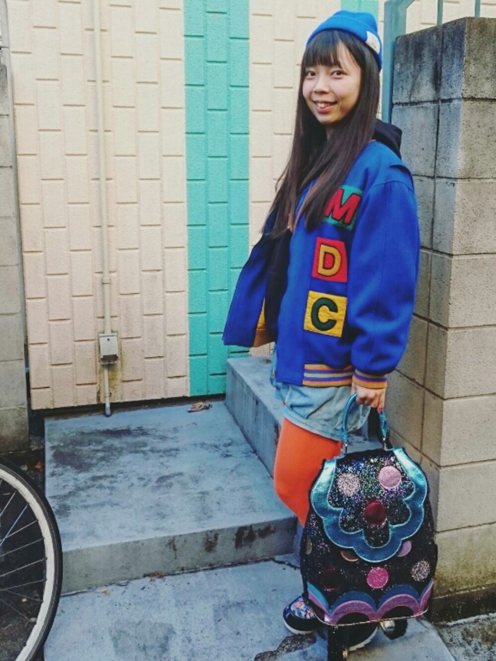 【私服コーデ♡】 青 × オレンジ🍊 ビビッド な カラー が すきです。 (すべて私物♡) Instagram 👉 @wildlilychie