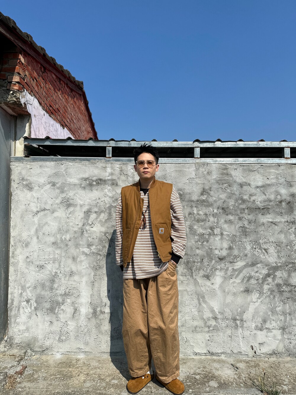 今天走一套同色系穿搭, 以條紋衣做打底, 因為條紋紋路讓整體顏色不會過於單調, 再搭配同色系的夾克做出層次, 褲子跟鞋子也都選用相近色系呼應, 在搭配一些小飾品點綴下。 謝謝大家的收看!!🙏🏻 Instagram:william_0621_