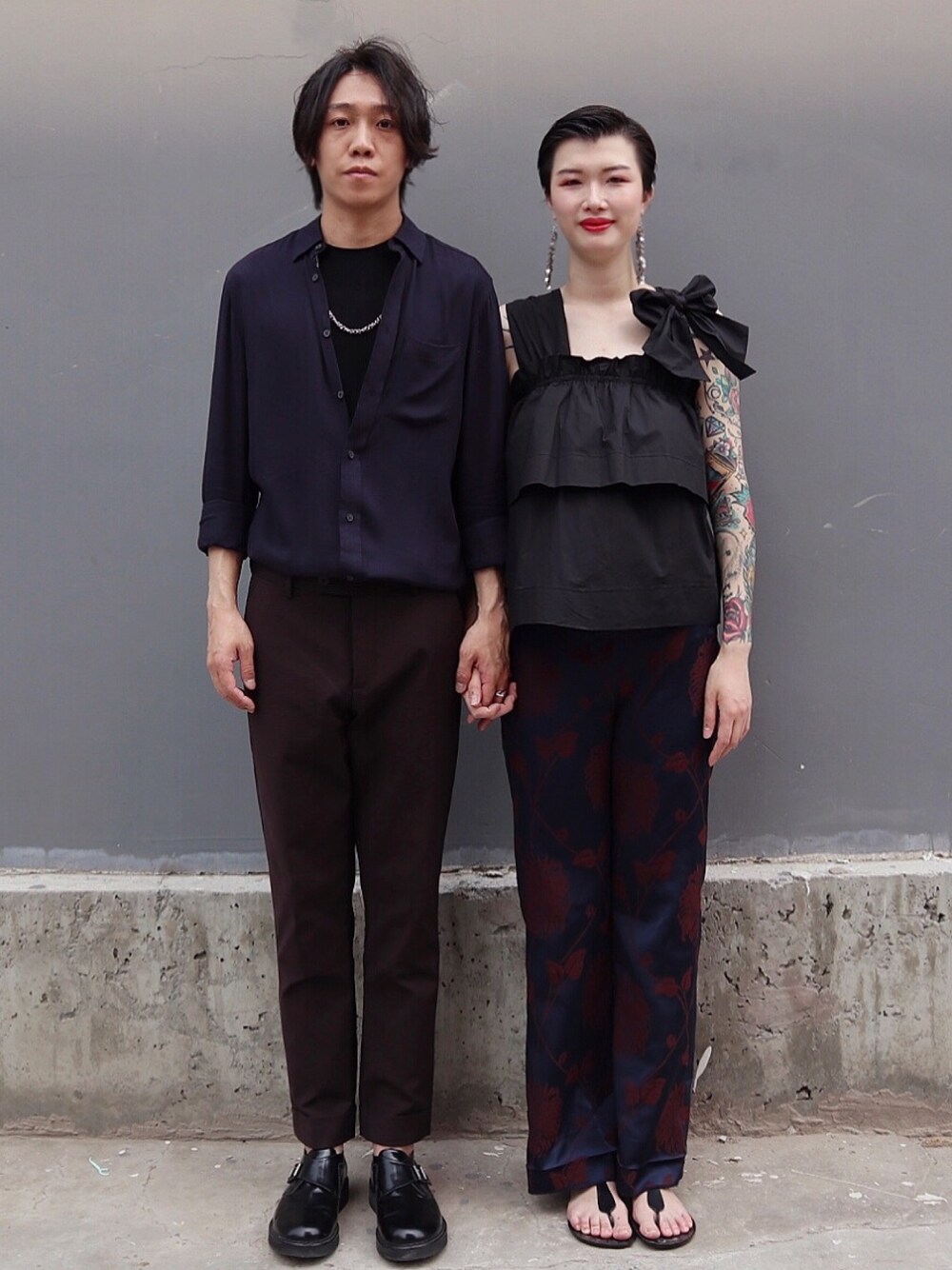九号情侣 _ Look 18 以藏青色为重点 用酒红色凸显时尚风格 整体黑色贯彻整体