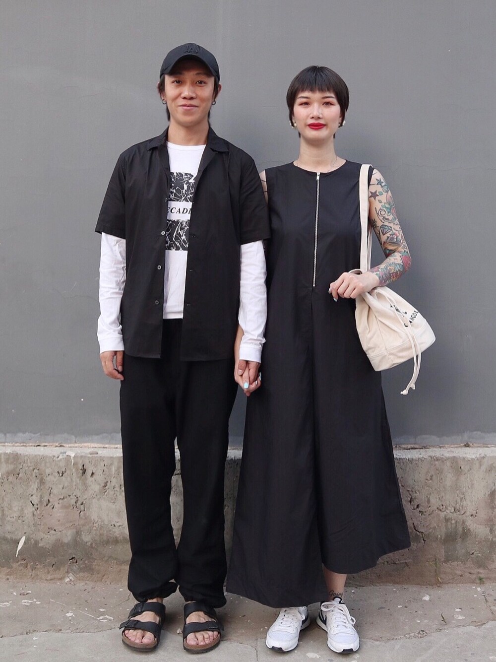 九号情侣 _ Look 24 整体以黑色为主色调 用白色作为点缀 整体风格休闲且不失时尚感