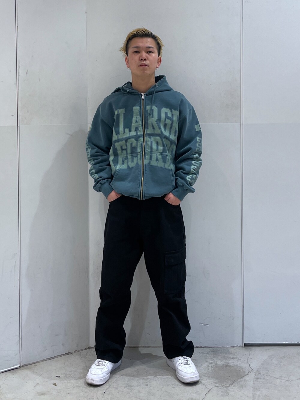Xlarge_Willy(XLARGE原宿)のパーカー「COLLEGE LOGO PIGMENT DYED ZIP UP HOODED SWEATSHIRT」を使ったコーディネート