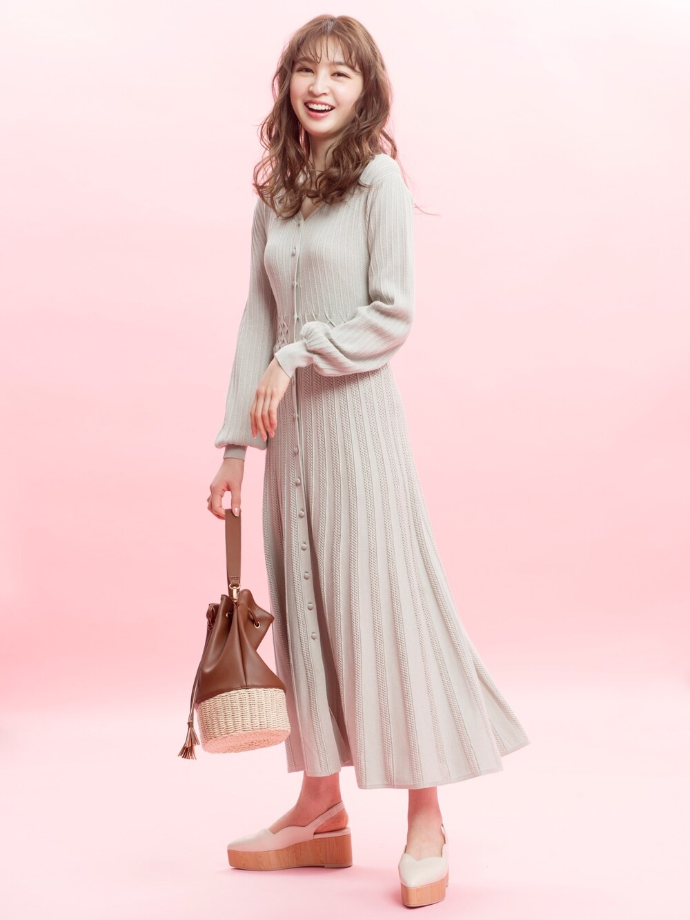 ◇WILLSELECTION/スモッキングフレアニットワンピース ナローシルエットのニットワンピースは、 今年らしいウエストスモッキングがポイント! ボタンをはずせば、 カーディガンとしてもお召いただける 2WAYタイプのワンピースです。