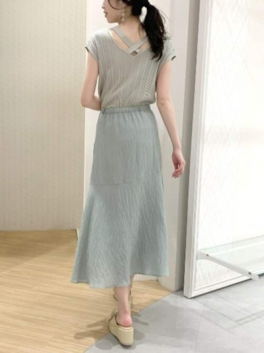 淡いミントグリーンコーデ♡ エアリーなスカートではかなげフェミニン♪ ラフィアサンダルで夏らしい仕上げ。 お花畑に似合いそう♪