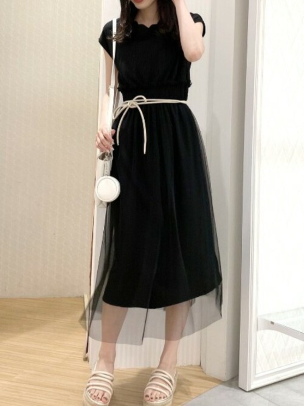 WILLSELECTION(WILLSELECTION)のワンピース「スカラップリブチュールオーバーワンピース」を使ったコーディネート