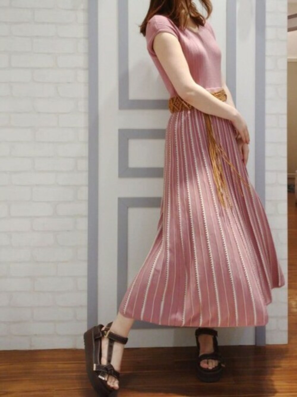 大人可愛いコーデ 大人っぽく見せるニットワンピースも、 可愛らしさを取り入れられるピンクをチョイス! 小物は茶系でまとめて、ピンク×ブラウンコーデに。 伸縮性のあるニットで楽ちんながらも、 ベルトのアレンジでメリハリもしっかり。 足元は決めすぎないよう、あえてスポサンを♪