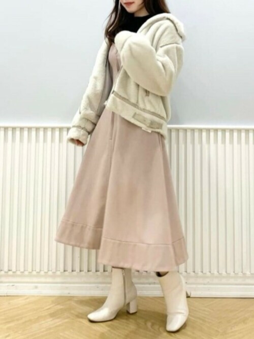 *フェミニンカジュアル* ジャンスカはウエストすっきりで シルエットがとても綺麗!! スカートがふんわり広がるフレアが大人可愛い✨ ブルゾンはエコファーの触り心地が気持ちよく暖かい♡ カジュアルにもフェミニンにも合わせやすい 万能アイテム! ニットはすっきり着られる大人可愛いデザイン♪ 着用 トップス → Fサイズ ジャンスカ → Fサイズ ブルゾン → Fサイズ