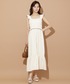楽に着られるシャーリング仕様のワンピース。 伸縮性があり、フィット感があるので一枚でも安心です。 露出の気になる方は、Tシャツやシアートップスとレイヤードするのがおすすめ。