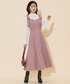 フロントジップがモードな雰囲気を演出する、レイヤードスタイル。 肩部分は飾りリボンになっており、フラットなデザインが程よく可愛らしさをプラスしてくれます。