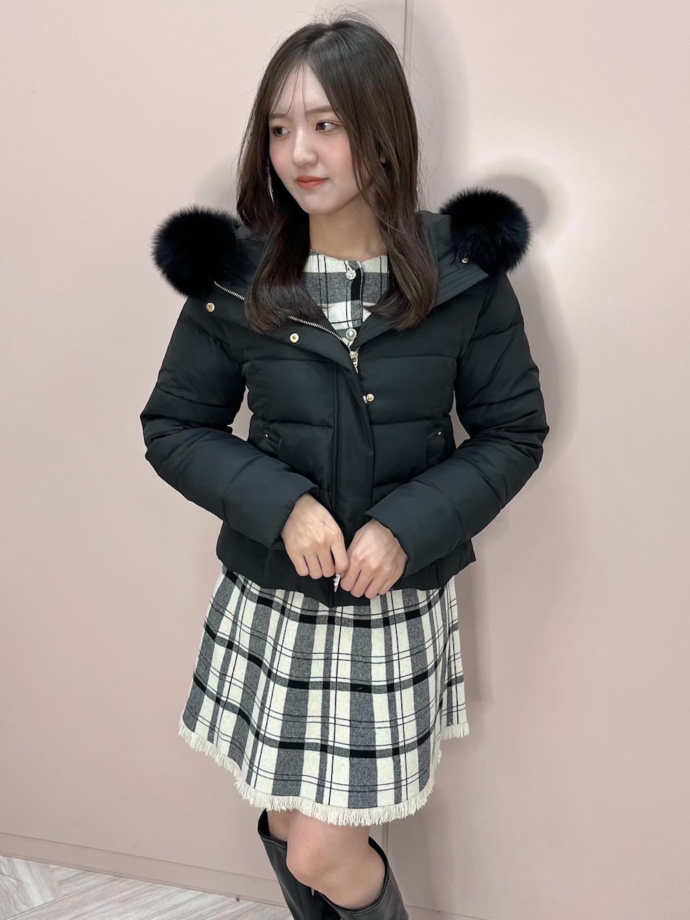 リアルファーを使用した本格ダウン。 ダウン80%使用の軽くて暖かいショートアウター。 フードとファーは取り外して着回し可能◎ 後ろはゴムになっており、ペプラムデザインがくびれのあるスタイリングを叶えます♪