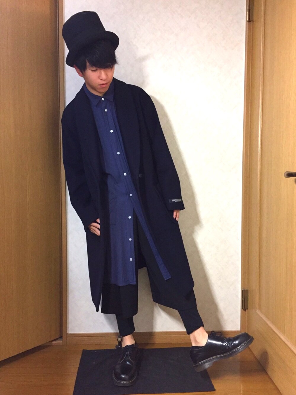 チェスターコート×ワイドパンツ レッグウェア履いてるからワイドパンツでも寒くないよ!!! あとマーチンを久々磨きました