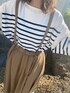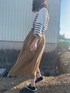 wincsのTシャツ/カットソー「Panel border Loose silhouette boat neck T-shirt/パネルボーダー ルーズシルエット ボートネック 半袖Tシャツ」を使ったコーディネート