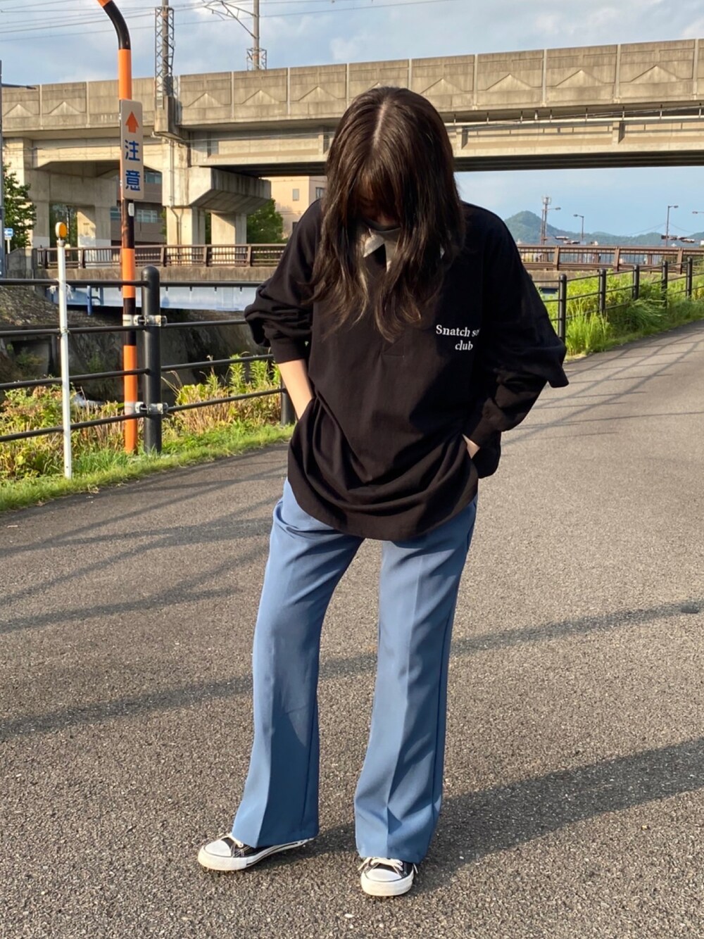フレアパンツをカジュアルに 合わせてみました✨ クラシカルな色味も良いです😄