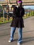 wincsのスラックス「Tailored flared pants/テーラード ブーツカット タック フレアパンツ/カラーパンツ」を使ったコーディネート
