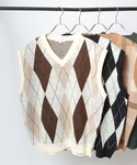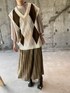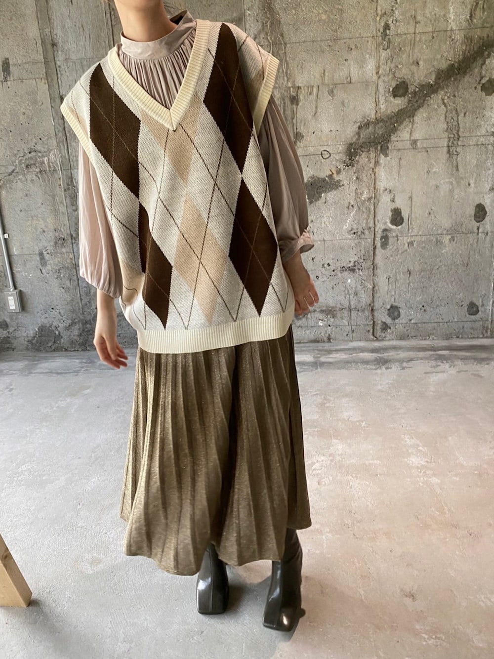 オーバーサイズのニットベスト 茶系の色味で合わせました🤎 アーガイル柄が可愛いですね✨