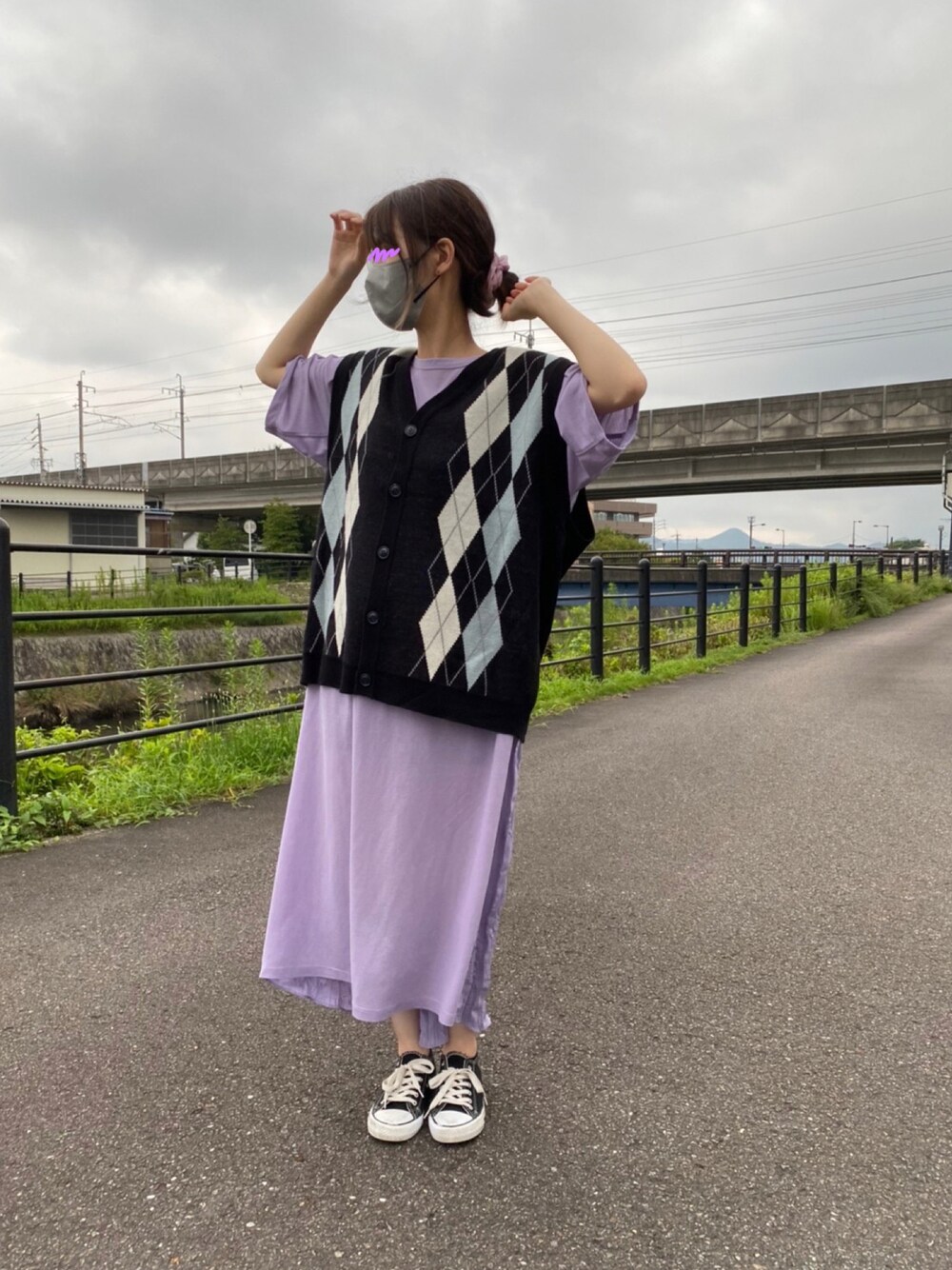 アーガイル柄が可愛い ニットベスト🧶 いろんなコーデに使えそう💜🖤