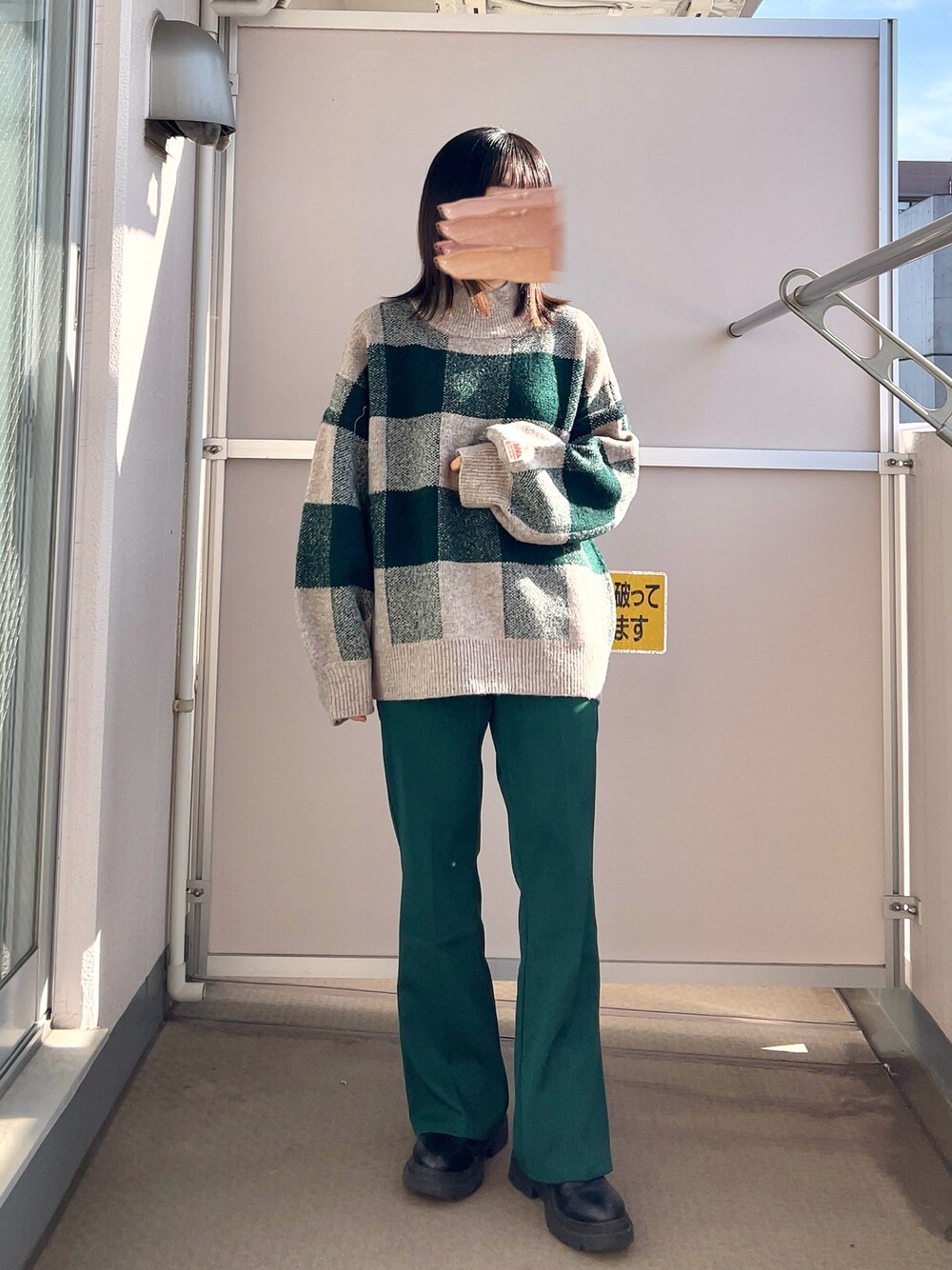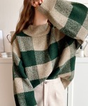 38のニット/セーター「《JaVaジャバ コラボ》もちっとふんわり触感。アルパカライクブロックチェックニットオーバーサイズプルオーバー」を使ったコーディネート
