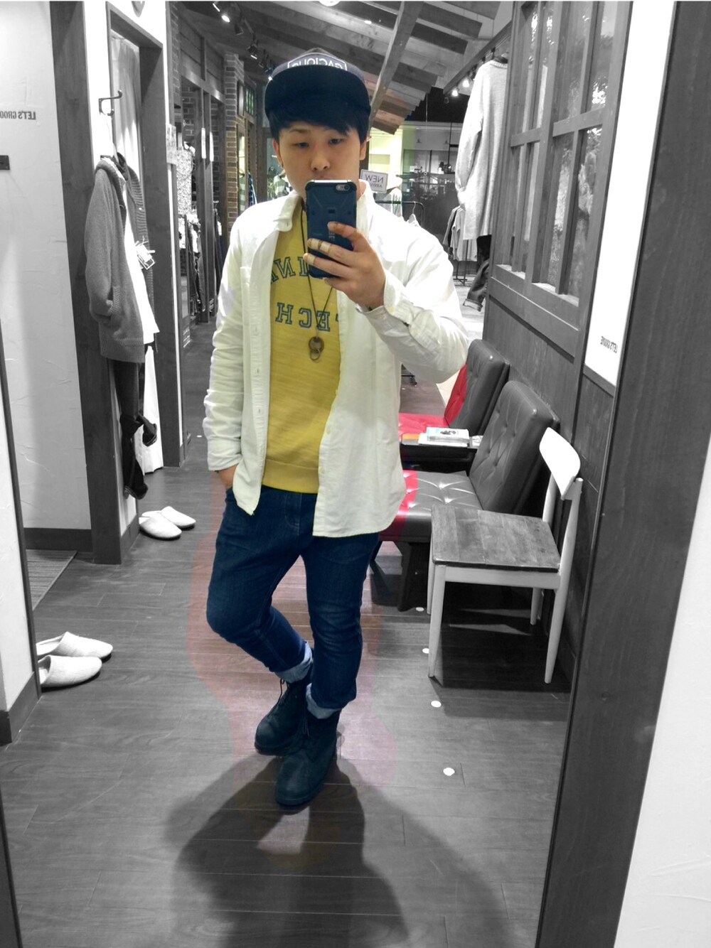 the 白シャツコーデ! 春感はだしつつ、いつもと違うキャップを被りたかったので、シンプルでもシルエットと丈感を重視しました。 足元はブーツで華奢感を作って、だらしなくないようにしたお客様に理解してもらえる組み合わせにしました!