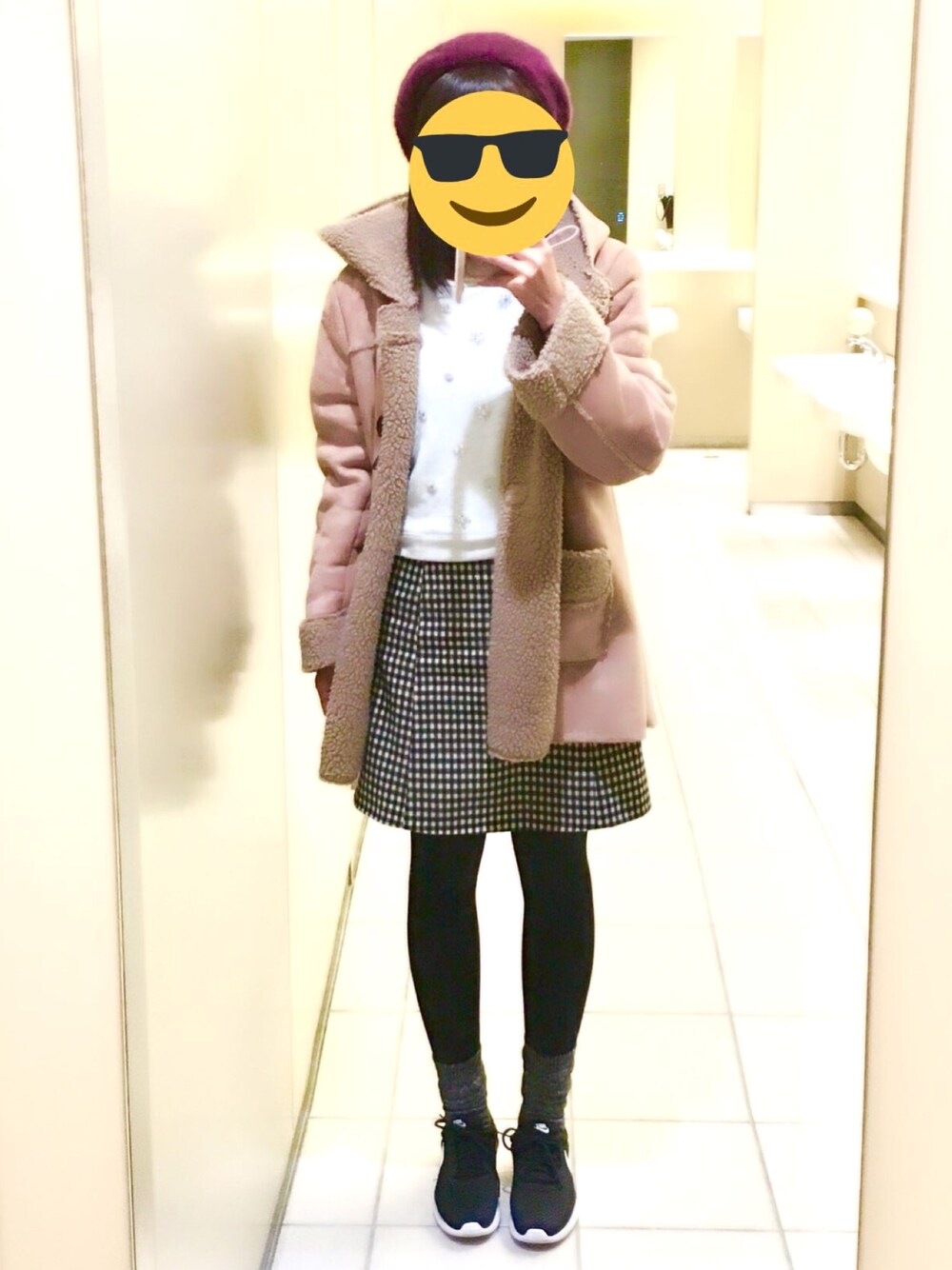 母から奪取したムートンコートはLLだから中に色々着込めるし、暖かいからこれ以外着たくなくなる。 ABCマートでナイキタンジュン買ったから履いたけど、靴下はけば大丈夫っていってたお兄さん、やっぱりメッシュは寒いわ。 あと突然彼氏が学校に凸してきたけどベレー帽持ってたからなんとなくいい感じのコーデに仕上げられたしいいゾ〜これ。