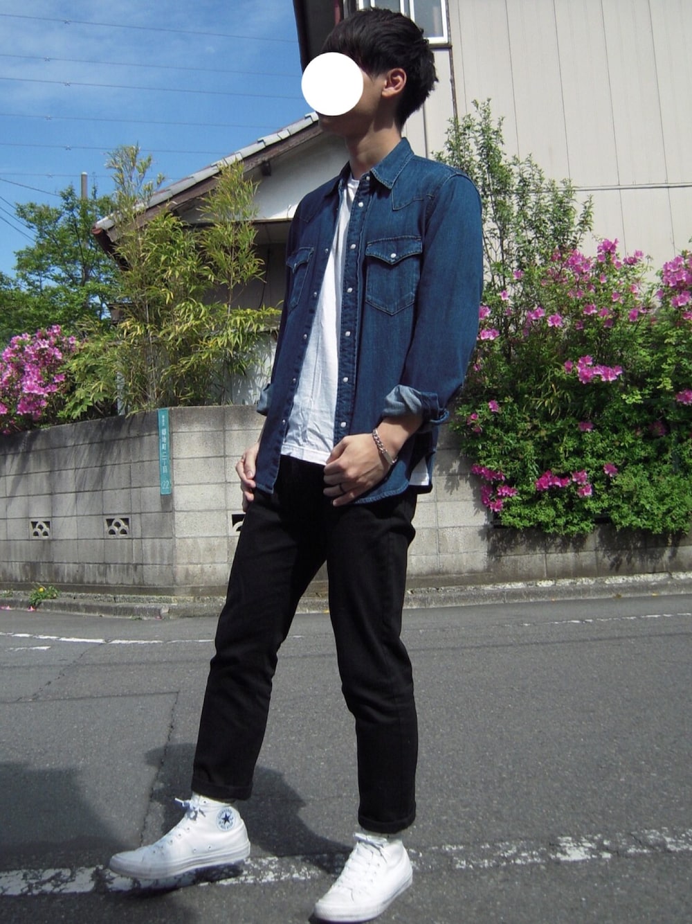 こんちゃ!! Today's coordinate👕👖 デニムシャツを使ったシンプルコーデ👍 昨日は友達と高円寺行ってきたー✌️ 更に古着が欲しくなった🤢 tsuba