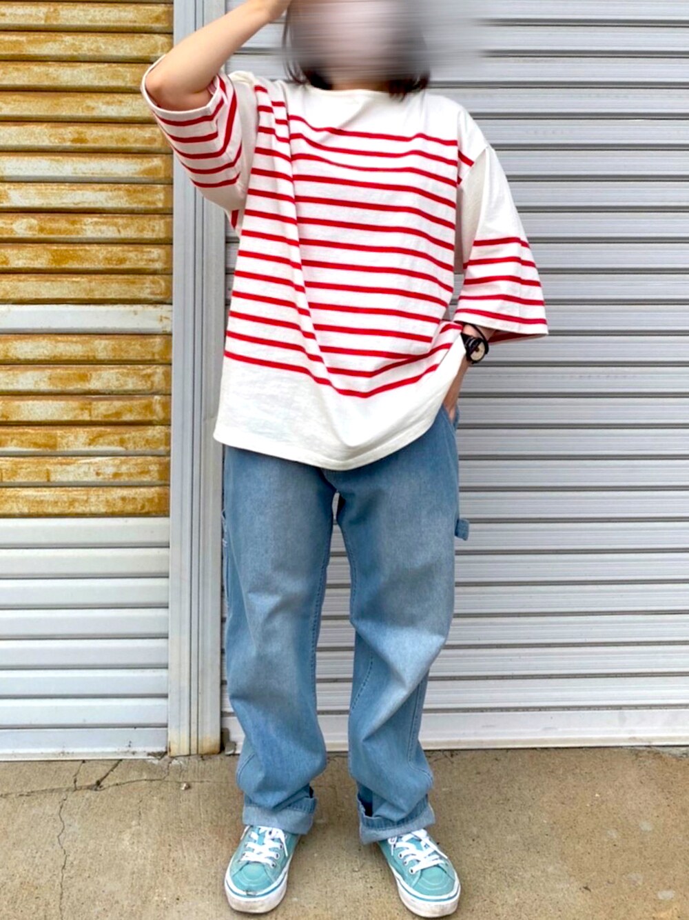 最近歩いてるとボーダーシャツ着てる人よく見かける ダボっとしてて可愛いねぇ〜