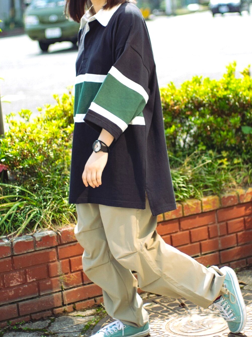 焼きどんぐりのポロシャツ「Big silhouette Rugby shirt / ビッグシルエット 半袖 ラガーシャツ」を使ったコーディネート