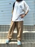 焼きどんぐりのスラックス「T/C wide balloon pants/タック ワイド バルーンパンツ/カラーパンツ」を使ったコーディネート