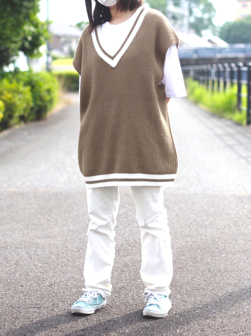 焼きどんぐりのベスト「チルデンニットベスト」を使ったコーディネート