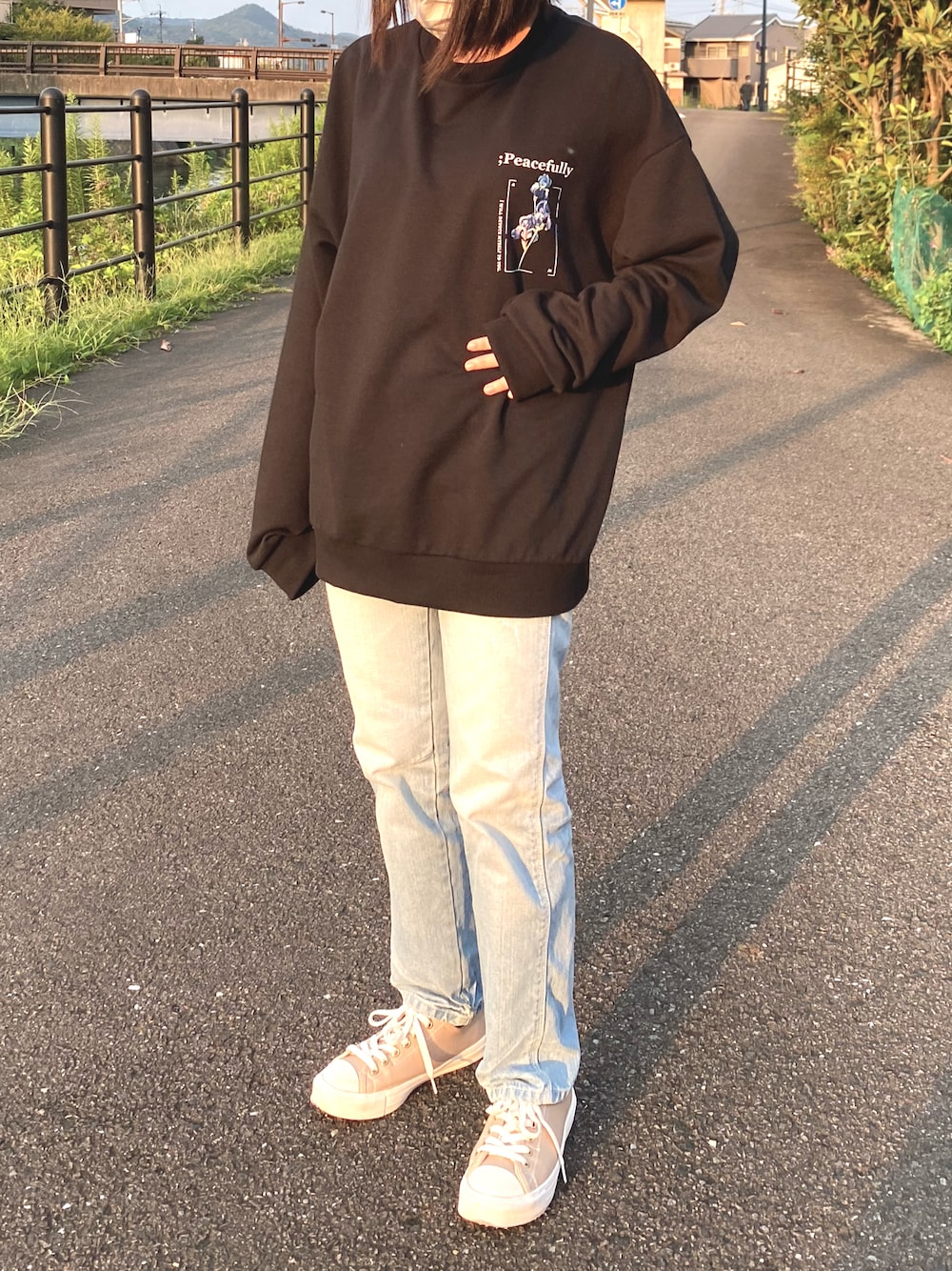 焼きどんぐりのスウェット「wide silhouette flower print sweat/ワイドシルエット フラワープリント スウェット/トレーナー」を使ったコーディネート