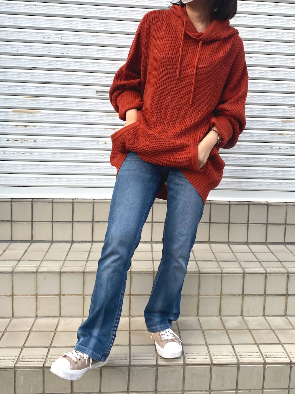 焼きどんぐりのパーカー「SUGGESTION 畦編みニット ワイドプルパーカー 2022AW」を使ったコーディネート