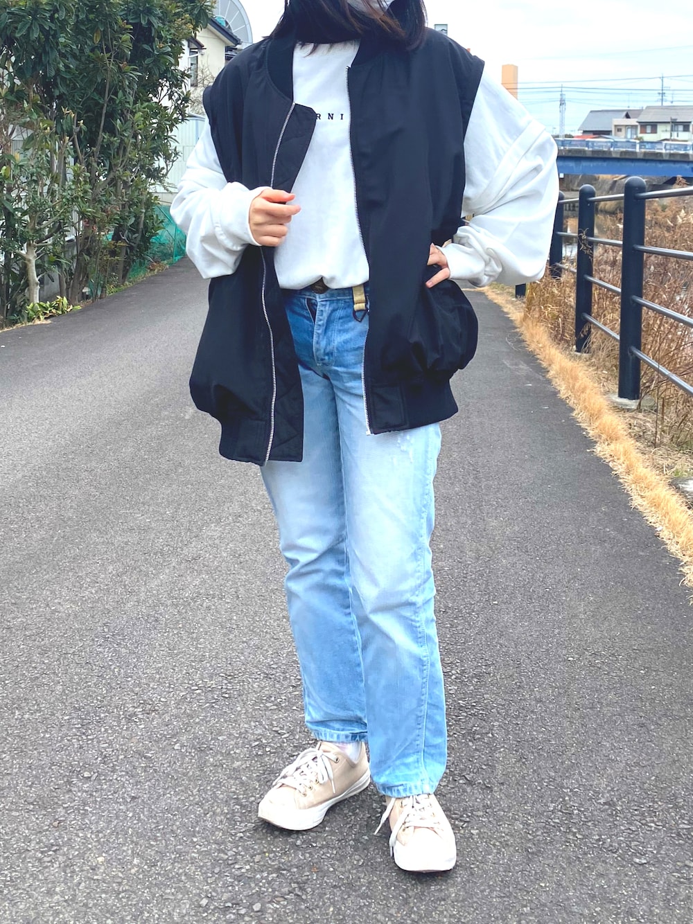 焼きどんぐりのMA-1「2way Balloon Sleeve Big silhouette MA-1/2way バルーンスリーブ ビッグシルエット MA-1」を使ったコーディネート