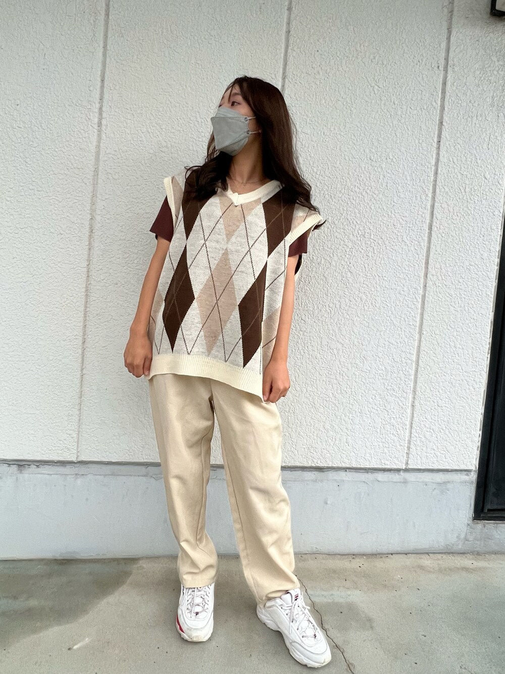 ニットベストでキレイめコーデ✨ 韓国っぽいアーガイル柄がかわい🫶