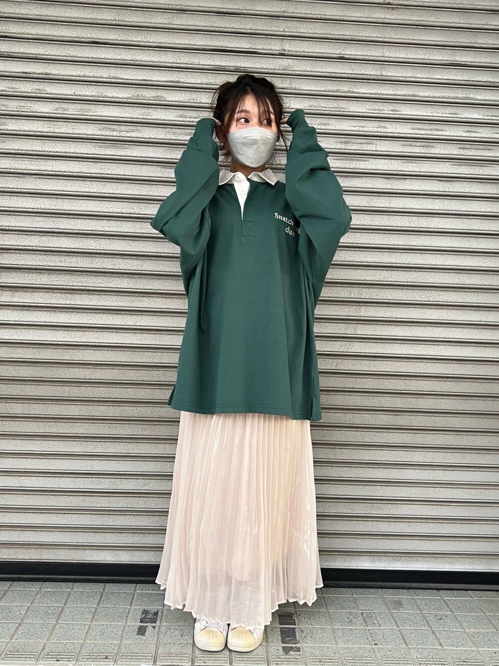 ビックシルエットのラガーシャツで キレイめカジュアルコーデ✨ 秋にはかかせないグリーン💚