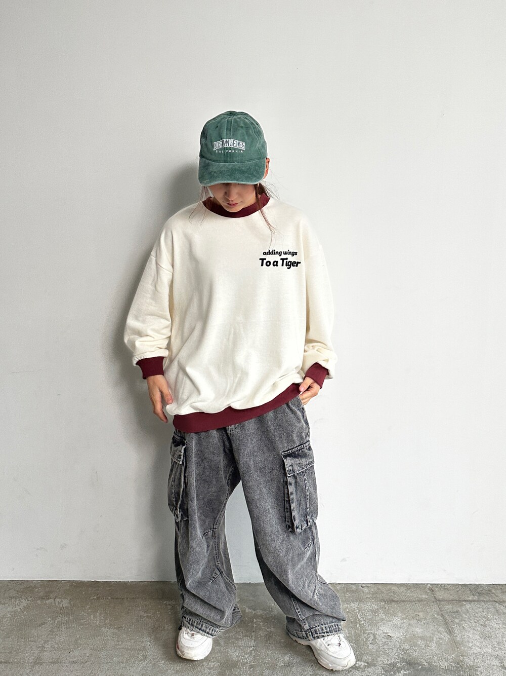 Juriのスウェット「oversize tiger back print ringer sweat shirt/オーバーサイズ タイガーバックプリント リンガー スウェット シャツ/トレーナー」を使ったコーディネート