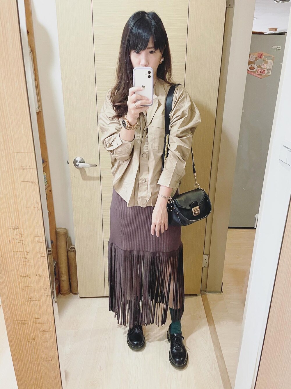 Winnie C 🇹🇼のショルダーバッグ「Longchamp Mademoiselle Calfskin Leather Shoulder Bag」を使ったコーディネート