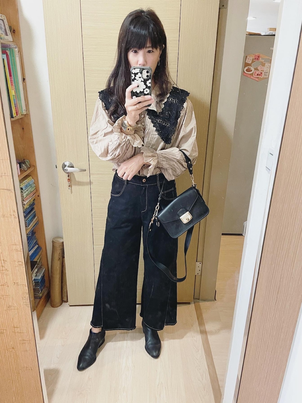 Winnie C 🇹🇼のショルダーバッグ「Longchamp Mademoiselle Calfskin Leather Shoulder Bag」を使ったコーディネート