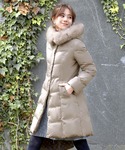 Winnie C 🇹🇼のダウンジャケット/コート「フォックスファーバッスルスタイルダウンコート | レディース アウター 羽織 体型カバー 保温 暖かい ロングコート フード ダウンジャケット フォックスファー リボン」を使ったコーディネート