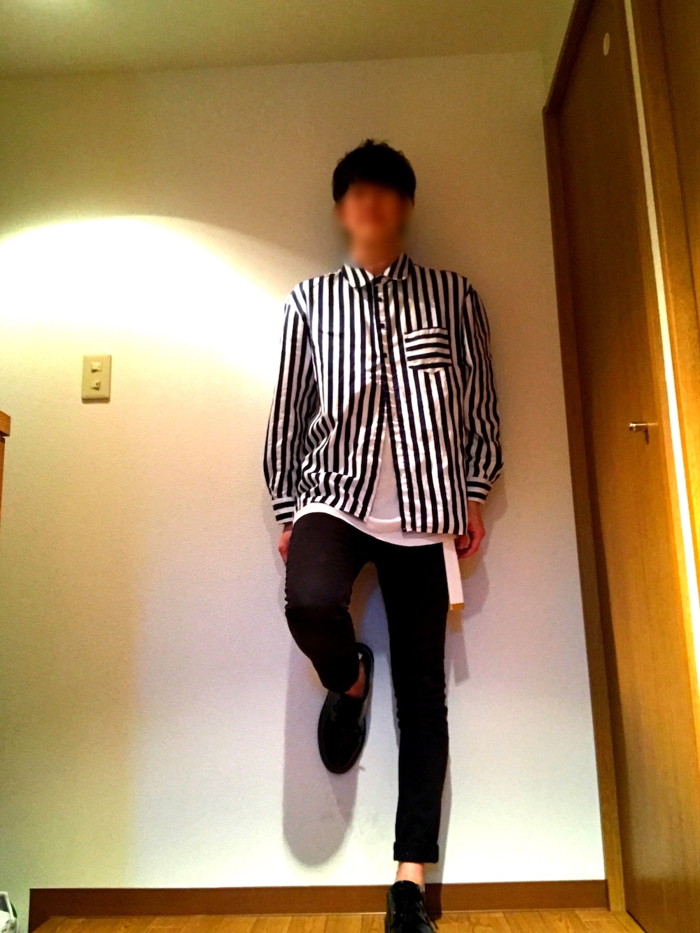 ストライプシャツコーデ👔 今回着てるのは太線! 細線のストライプも欲しい🎶 春が終わりそおな暖かさになってきたけど、もっと春服を着たいです😊