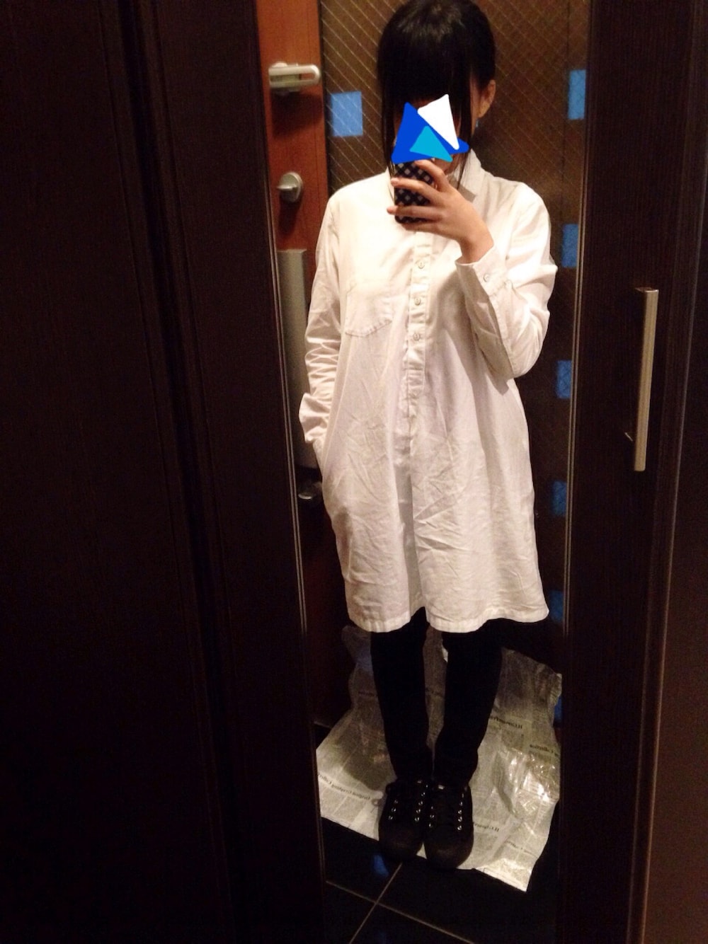 白と黒ばっかりです。 がっこに行ったら、皆に白衣みたいって言われたの。 白衣ルック。