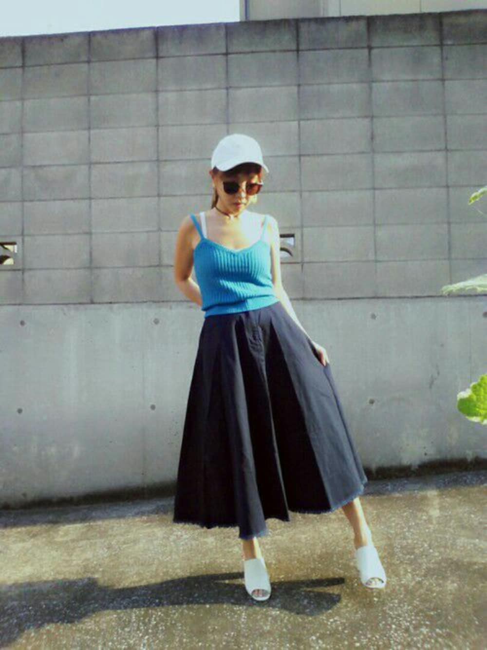 サンダルはフォーエバー だいぶ、夏!なコーデ ブルーとホワイトで涼しげにー! 仕事では海に行くけどプライベートでまだ行ってないー、、
