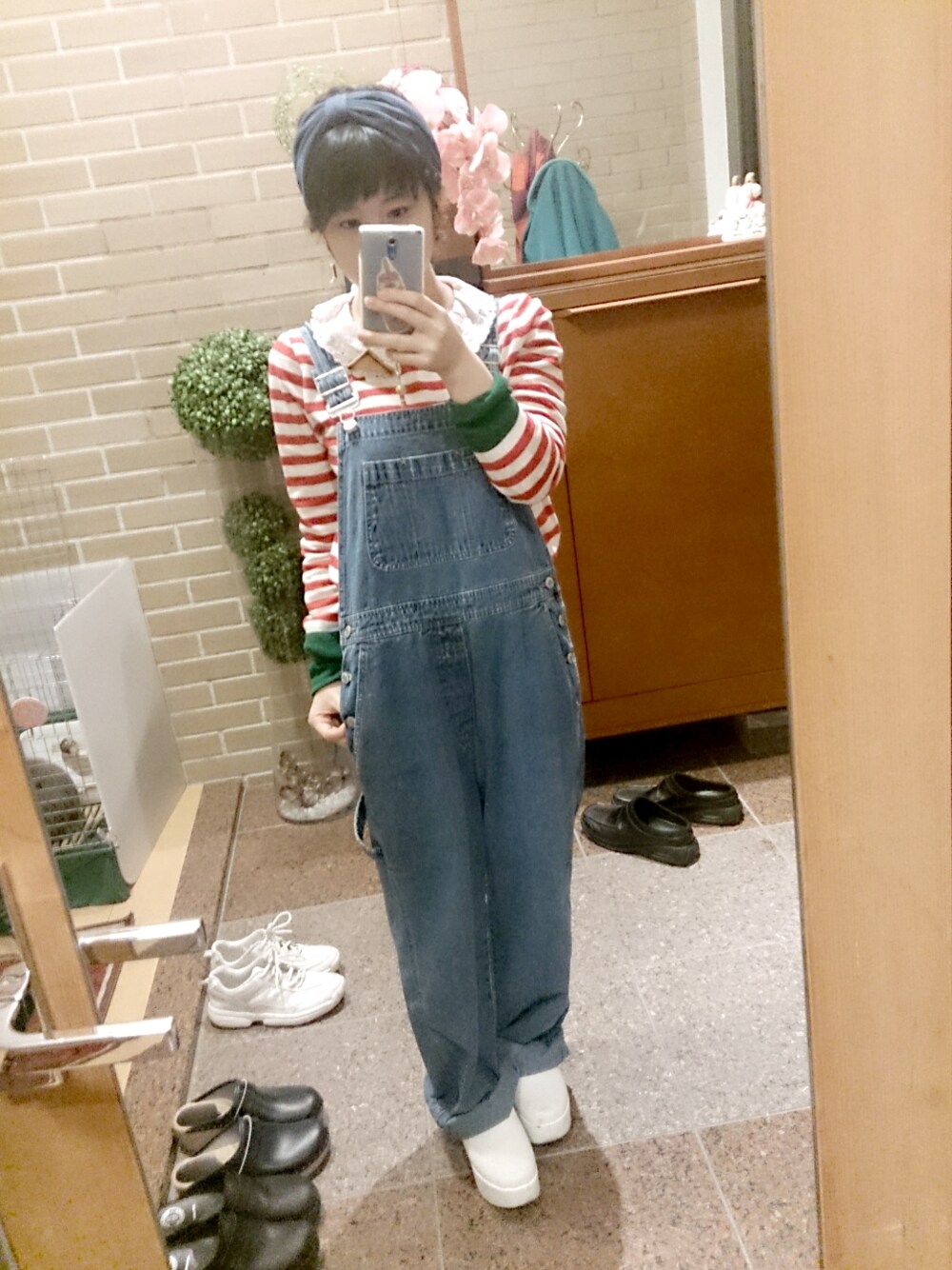 韓国のウォーリー的ニット 古着のオーバーオール 食パンブローチ